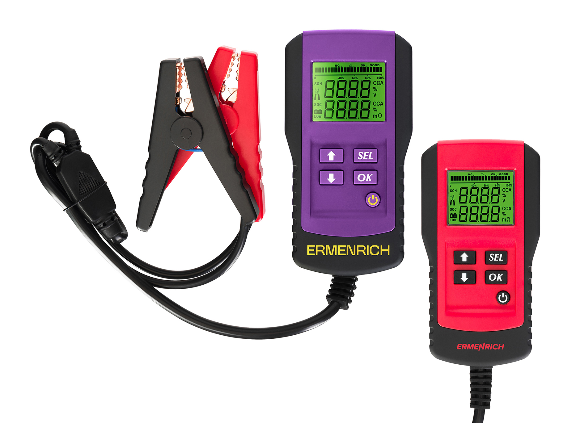 - Measures voltage, internal resistance, and cold cranking amps (CCA)