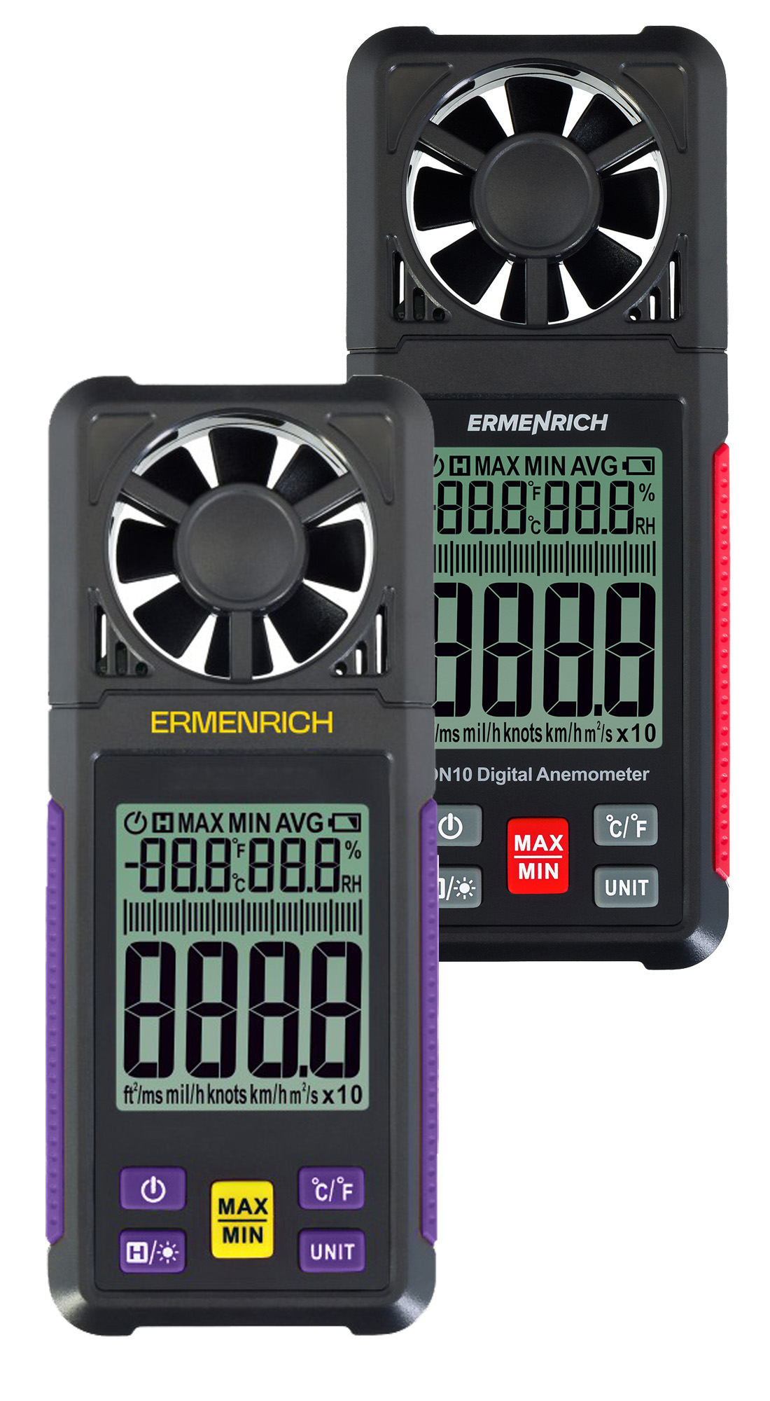 The Ermenrich Seek DN10 Digital Anemometer is a professional measuring tool that enables you to monitor air flow speed, temperature, and humidity outdoors or indoors. At the same time, the device has a small size, an ergonomic body, and operates completely autonomously.