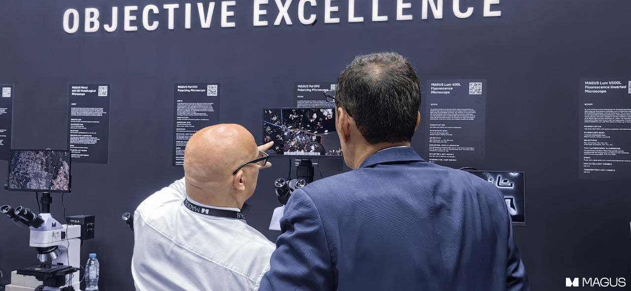 Over the three days of the exhibition, the MAGUS booth welcomed over 5,500 specialists. They explored our product range, conducted test drives, and asked our experts their questions. Many visitors came with their own samples for research, already aware of the company’s high level of expertise and its ability to solve complex analytical challenges. MAGUS microscopes were used to examine a wide variety of materials, including brilliant cut diamonds, rough diamonds, oil, textiles, and a thin petrographic section of a real meteorite provided by our team. This fully demonstrated the versatility and reliability of our equipment.